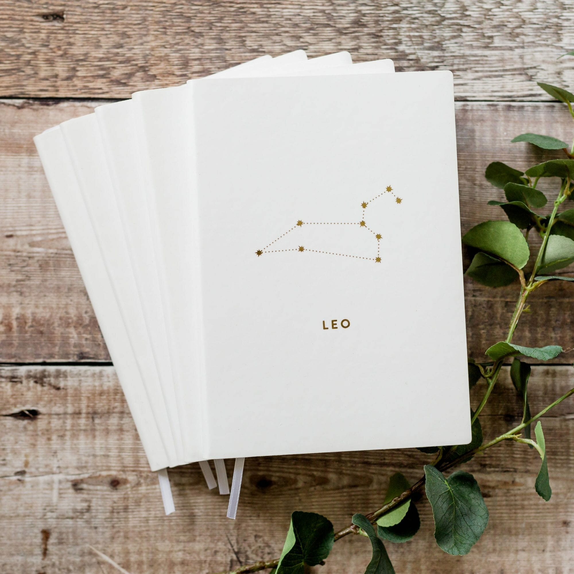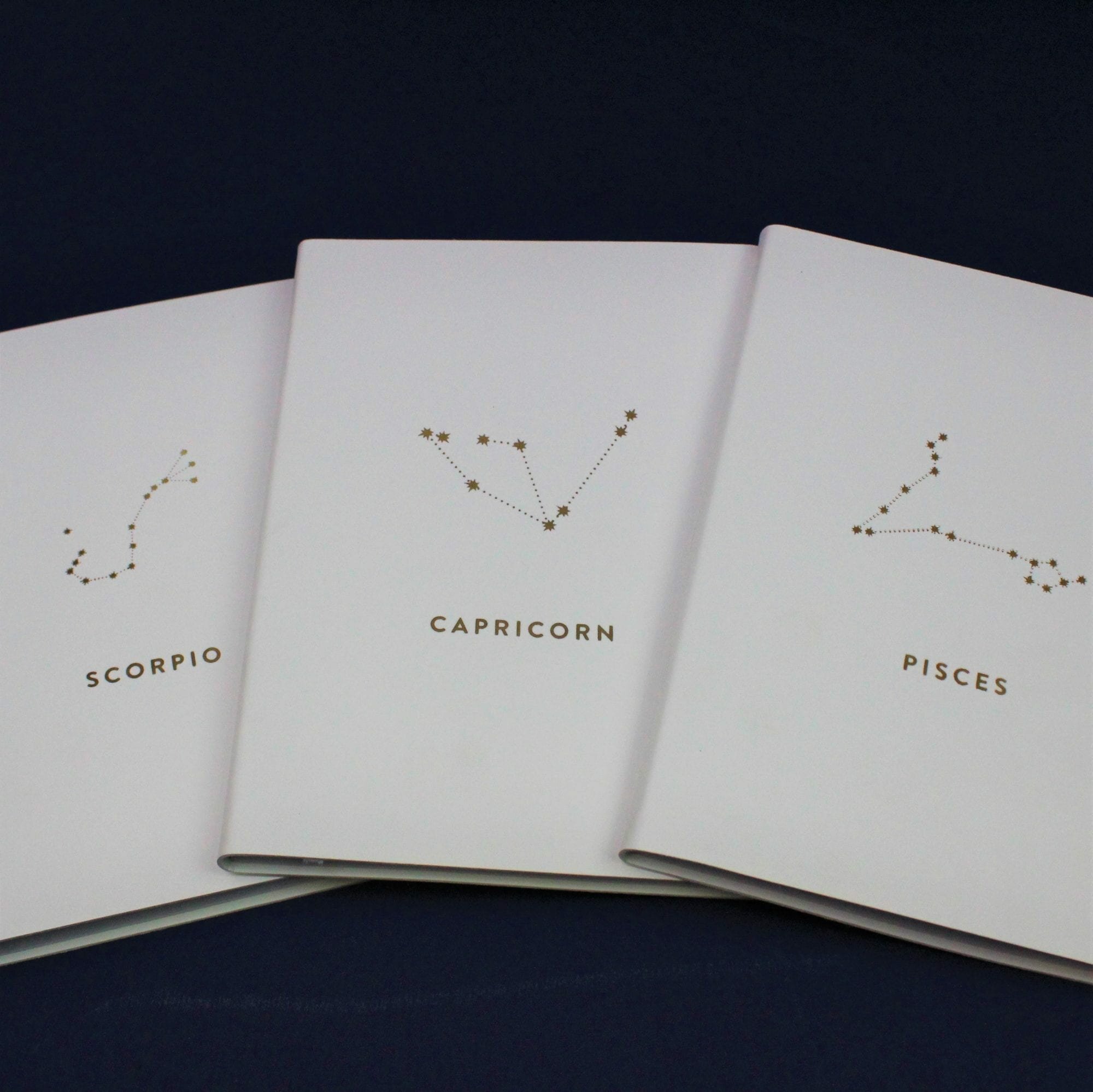 Our beautiful Star sign White and Metallic Gold Lined Notebooks come in all the star signs!